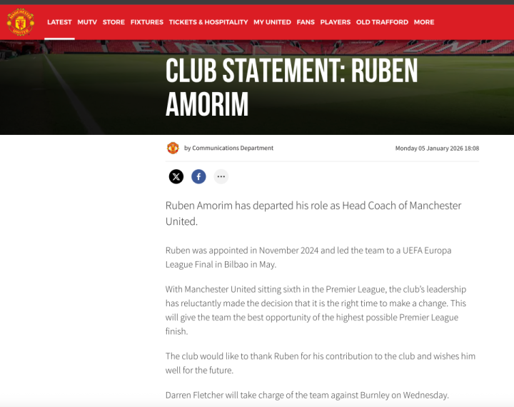 北京时间1月5日,英超豪门曼联俱乐部股票配资的最新消息,官方宣布正式解雇了40岁的主帅鲁本-阿莫林。前中场球员、现任U18主教练达伦-弗莱彻将暂时接任主教练一职。他的首场比赛将是周三晚客场挑战伯恩利,而曼联新帅正式任命,可能要等到夏季才会公布。